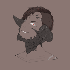 On his head, two small scars are etched below his left eye, cutting through the scales of his face. There are also a few small scars that jut past his hairline, unseen until it was shaved. His left horn is noticeably broken a good 3-4 ilms in the front and the back.