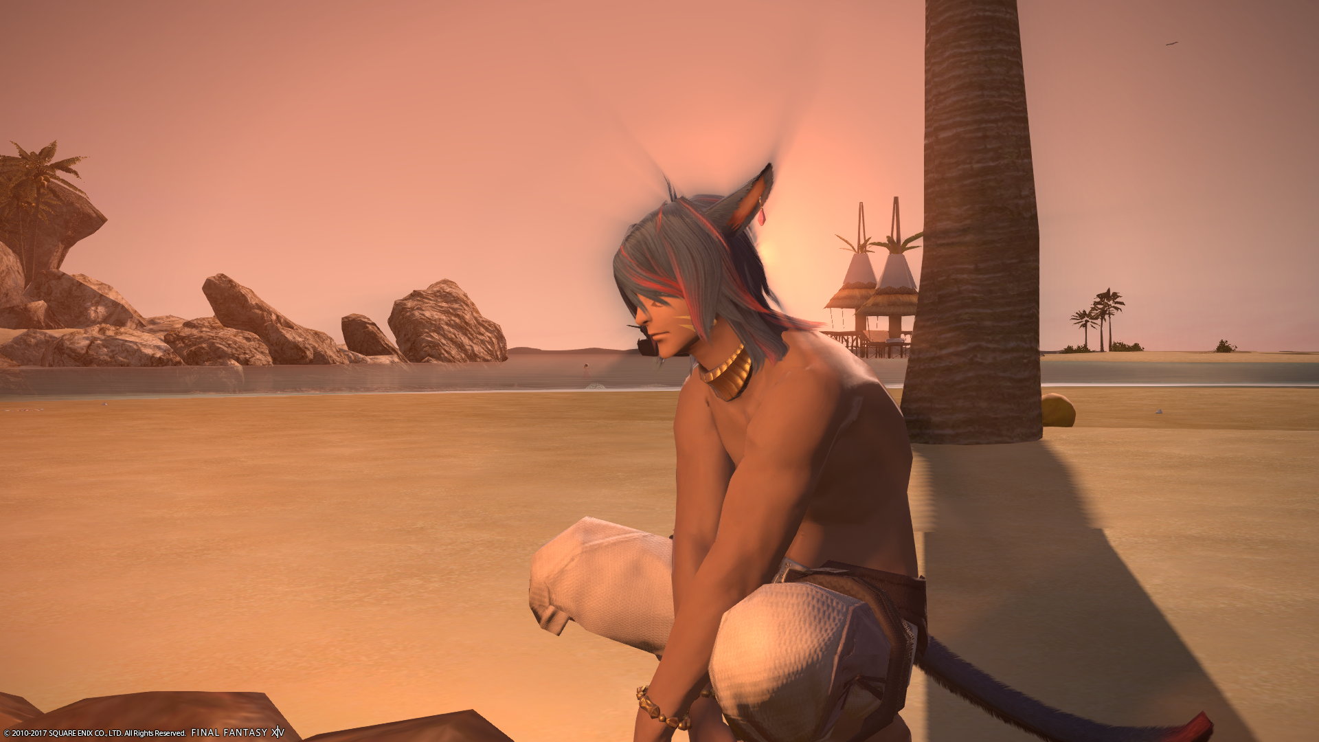 2.83 MB | A shot of a very grumpy Miqote on the beach |